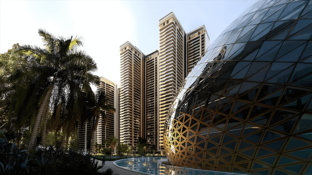 Elan The Presidential and Elan The Emperor represent the pinnacle of ultra-luxury living, majestically positioned in Sector 106 along the Dwarka Expressway in Gurugram. Spread across an expansive 40-acre premium land parcel, this flagship residential masterpiece by the Elan Group features a stunning collection of 3, 4, and 5 BHK residences and extravagant penthouses ranging from 2,450 to over 10,000 sq. ft. Designed by global architectural firm UHA London and constructed by Leighton, the project offers fully air-conditioned smart homes with imported marble flooring, private elevators, and expansive decks offering panoramic views. Residents are treated to 7-star resort-style living with a colossal 1.5 Lakh sq. ft. multi-level clubhouse, an Olympic-size swimming pool, floating saunas, and bespoke concierge services.